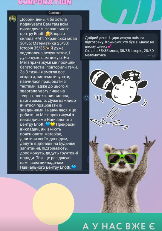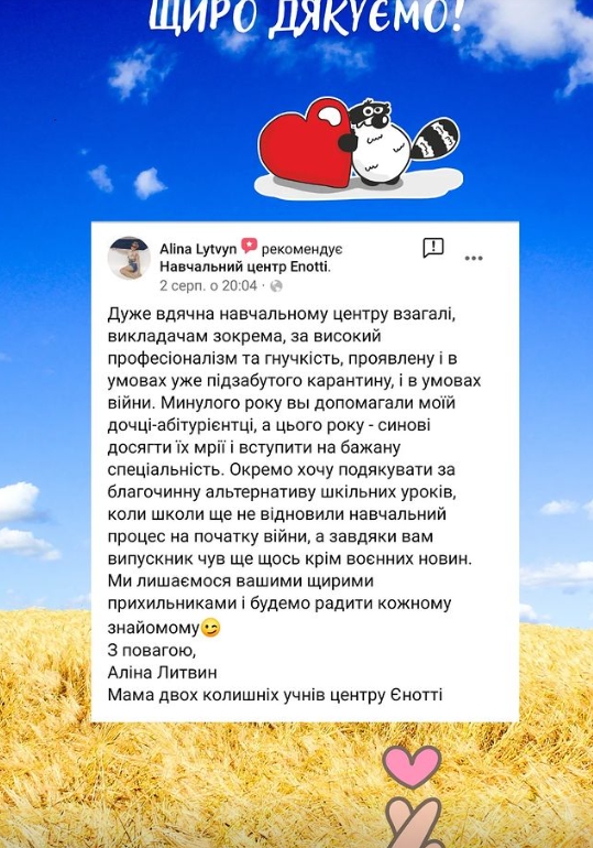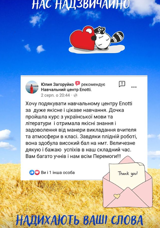 Навчальний центр Enotti заснований в 2013 році і за цей час ми підготували більше ніж 2000 учнів з середнім результатом 180-185 балів.