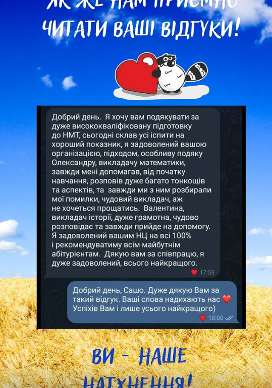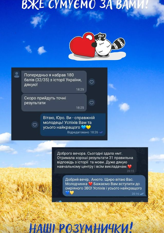 - Мають величезний досвід у підготовці до тестів ЗНО та з радістю готують учнів до НМТ;